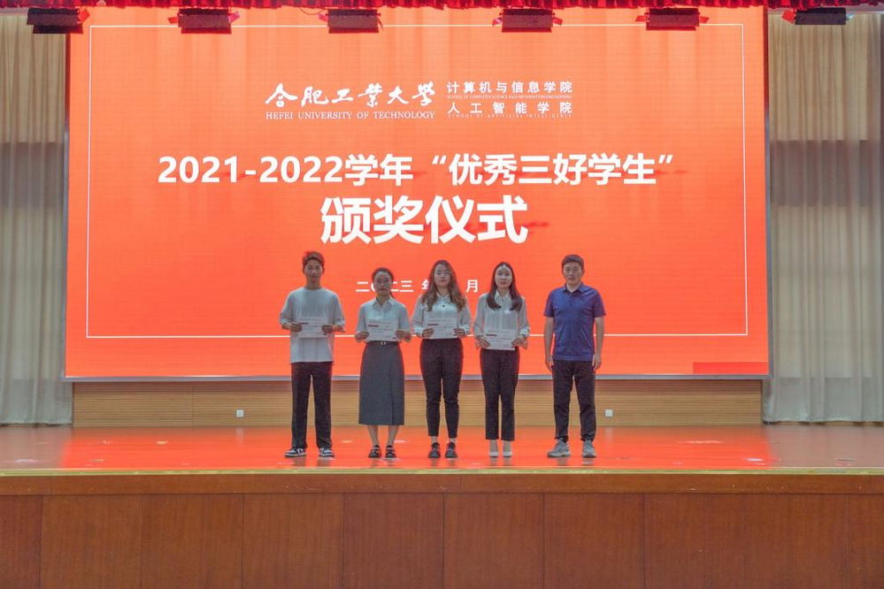 2021-2022学年先进个人表彰决定。国家奖学金获得者、安徽省优秀毕业生、计算机科学与技术2020级硕士研究生王佳敏作为学生代表发言,她结合个人经历,号召同学们要以理想照亮前行的路,以奋斗书写青春答卷,以吃苦锤炼过硬本领,以担当彰显初心使命,做“眼中有光”、“脚下有路”、“手上有招”、“肩上有责”的新时代好青年。