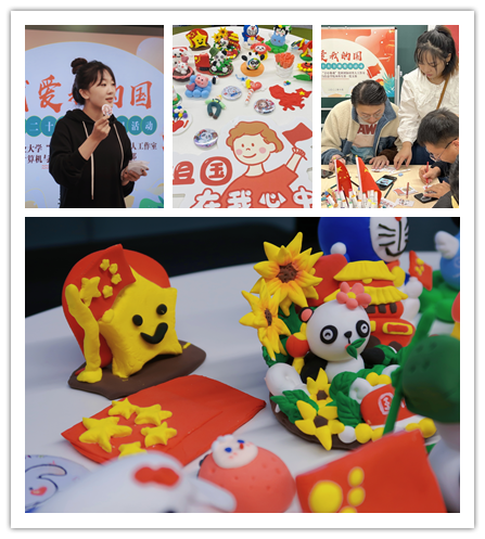 本科生第一党支部为党员师生们上了一堂生动的制作党员徽章创意黏土课。通过“爱国徽章DIY”和制作粘土画的形式,表达出对党和祖国的热爱与祝福。