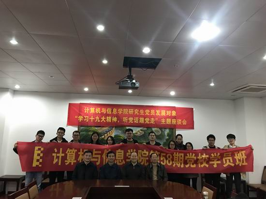 研究生党员发展对象同学一起围绕“学习十九大精神,听党话跟党走”主题进行座谈交流。