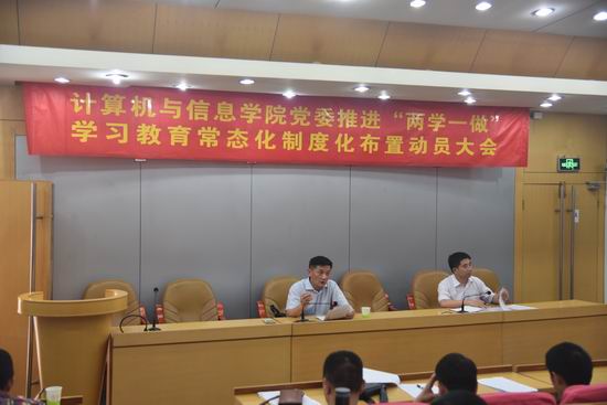 推进“两学一做”学习教育常态化制度化工作,全院教工党员和研究生、本科生党支部书记参加了会议。会上,院党委书记祖权作“两学一做”学习教育常态化制度化动员报告,院党委副书记何庆领主持会议。