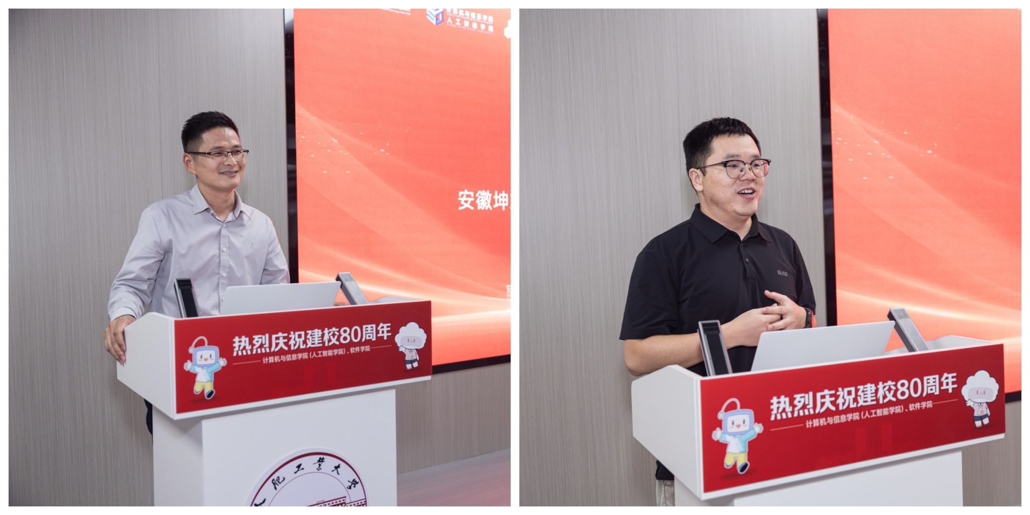 校友代表魏玉涛、沈浩依次上台,深情回忆在工大求学的青葱岁月,并分享了各自在职业发展、创新创业中的心得与感悟。他们表示,无论身在何处,母校永远是精神家园,愿为学院发展贡献智慧与力量。