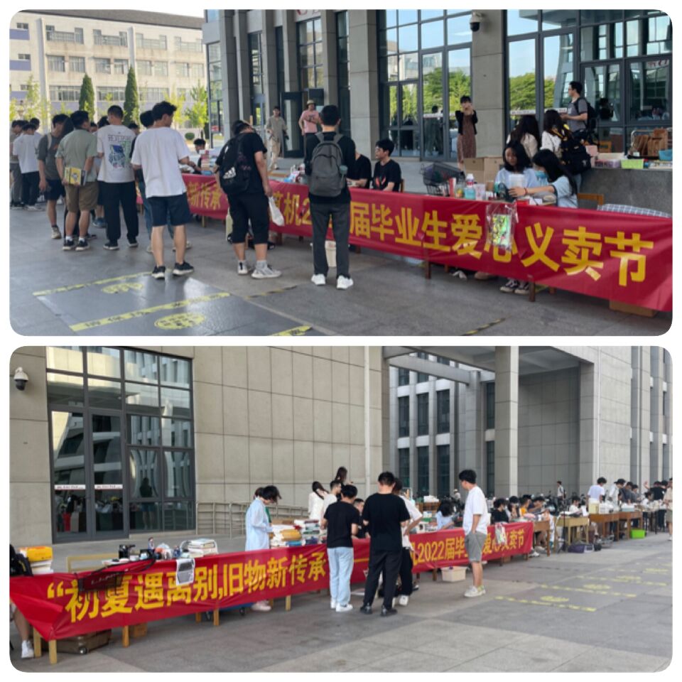 于6月7日傍晚在双子楼下广场开展“初夏遇离别,旧物新传承”2022届毕业生爱心义卖活动。