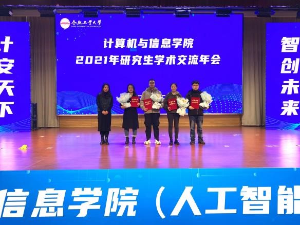 2021年研究生学术交流年会。计算机学院党委书记年永琪,副院长洪日昌,党委副书记、副院长张海林,副院长夏娜,软件学院副院长薛峰出席年会,特别邀请中国科学技术大学李厚强教授、合肥中科类脑智能技术有限公司邵梦副总经理作报告,路强副教授、吴克伟副教授等十余位青年教师及700余名研究生参加大会。