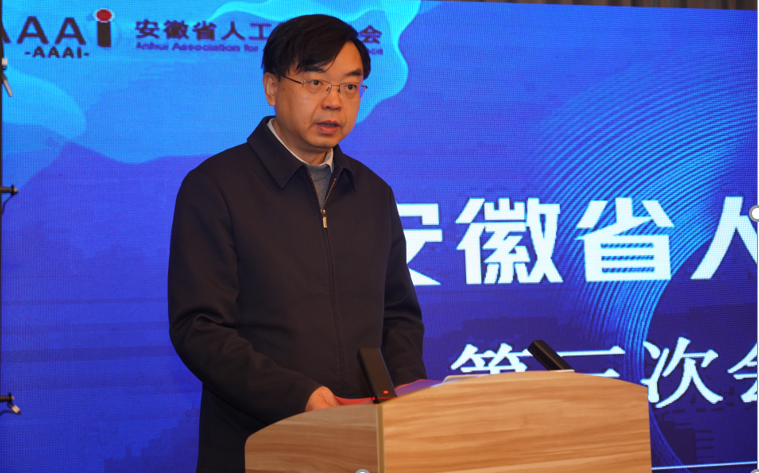 与学会在过去多年工作中的合作与支持、共同为促进安徽省人工智能发展而共同努力的历程,并表示学校将一如既往的支持学会和安徽省人工智能的发展。