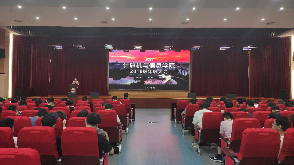于翡翠科教楼A座二楼报告厅召开了2018级年级大会,2018级辅导员叶璟、杨炳新主持会议,禁漫