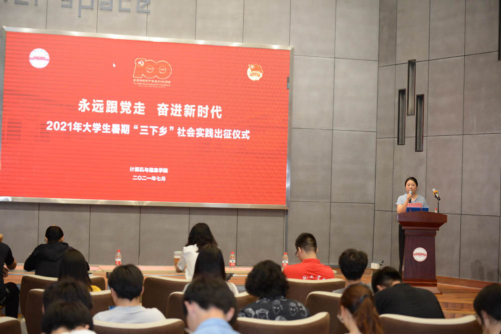 在大数据中心举办了2021年大学生暑期“三下乡”社会实践出征仪式,学院团委相关老师、相关年级辅导员、参加社会实践的全体同学参加了本次活动。