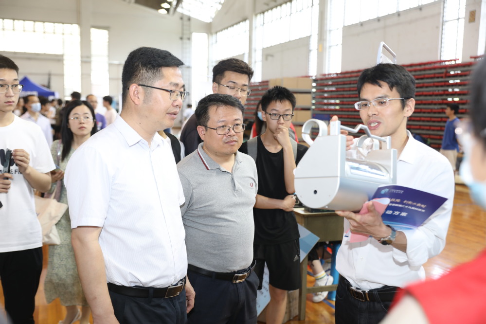 武国剑对科技节开幕表示热烈的祝贺。武国剑指出,学校历来重视大学生开展各类科技创新活动。十三五期间,学校科技创新能力水平大幅度提高,每年在各类学科竞赛中获得省部级以上奖项从974项增长到1886项,参与学生近23000人,创新创业教育跻身全国高校第一方阵。“科技创新”必修模块和“创业活动”选修模块,不仅是“第二课堂成绩单”的重要组成部分,也是“两张成绩单”项目建设的重要内容,希望同学们以此次科技节为契机,在比赛中培养创新精神,激发创造力,提高科技创新能力和创新创业热情。