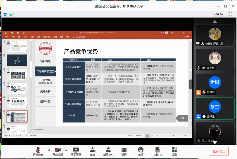 开展2020年大学生创新创业训练计划项目(简称“大创项目”)线上申报答辩工作。5月13日下午14:00通过腾讯会议平台开展线上答辩,院系专业老师和申报项目学生参加此项工作。