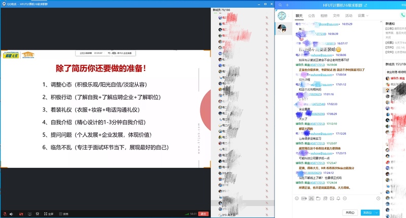 为深入贯彻落实教育部和学校有关疫情防控工作安排,做好疫情防控期间的毕业生就业工作,学院对2020届有求职意愿毕业生群体进行深入调研,在2月17日下午4点,通过信息化线上语音以及屏幕共享方式开展第一场就业指导系列空中讲座——简历,如何让HR对你一见钟情。讲座在学院毕业生求职群里发起,由毕业班辅导员黄晨老师主持,前程无忧校园招聘部高级讲师李望担任主讲。
