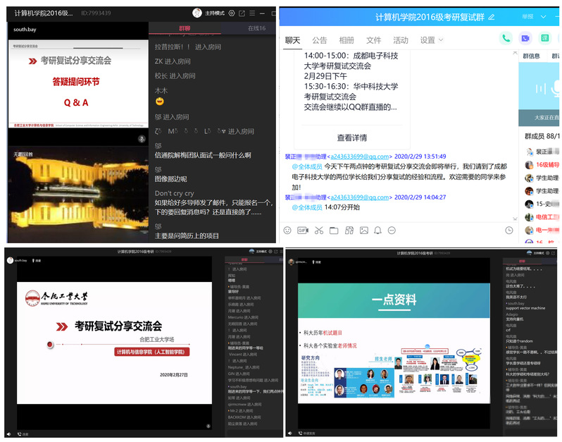线上开课第二周,以提升考研复试能力为专题的4场空中课堂《考研复试经验分享》开讲,分别是“中国科学技术大学”专场、“成都电子科技大学”专场、“华中科技大学”专场和“禁漫