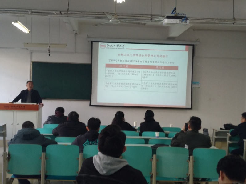 经济合同管理相关政策以及如何起草、上传合同;紧接着招标与采购中心贾贤龙副主任详尽的解读了学校招标采购法律法规和操作实务;科研经费管理办公室张思琦老师重点讲述了2019年禁漫