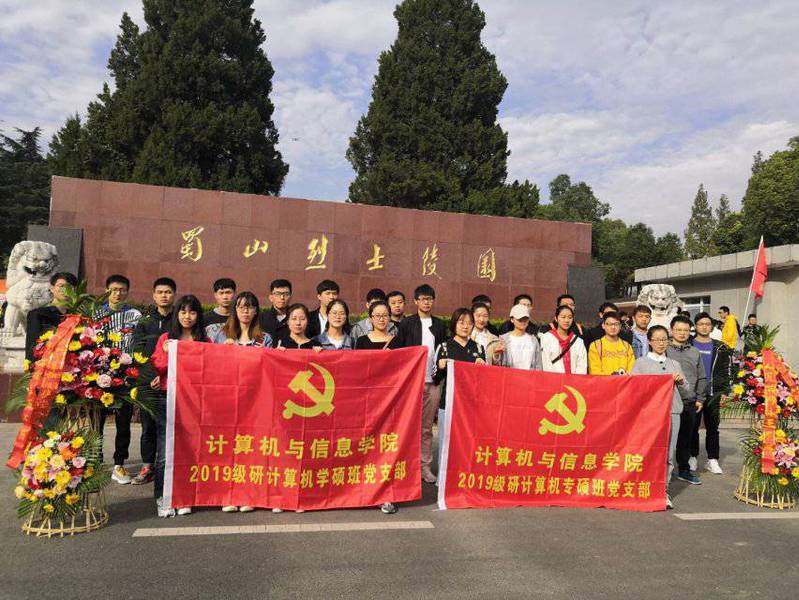 2019级研计算机学硕班和专硕班党支部开展了以“缅怀革命先烈、重温入党誓词”为主题的党日活动,共28名党员赴大蜀山烈士陵园参加了祭奠革命先烈活动。
