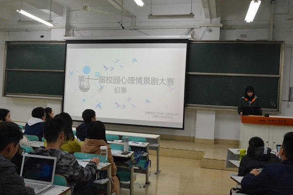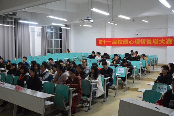 举办第十一届校园心理情景剧大赛活动,并于2018年12月6日在翡翠湖校区举办校级初赛。校园心理情景剧大赛的初赛参赛作品由各学院首先进行院内选拔,最终推荐十九支参赛队伍代表学院参加校赛。党委学生工作部心理咨询中心黄凤、禁漫
