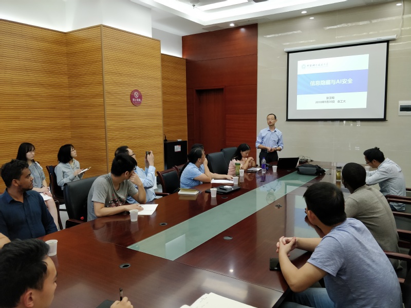 做了题为《信息隐藏与AI安全》的学术报告。来自学院相关系所教师、研究生和本科生参加了此次报告会。报告会由网络与信息安全研究所所长胡东辉副教授主持。