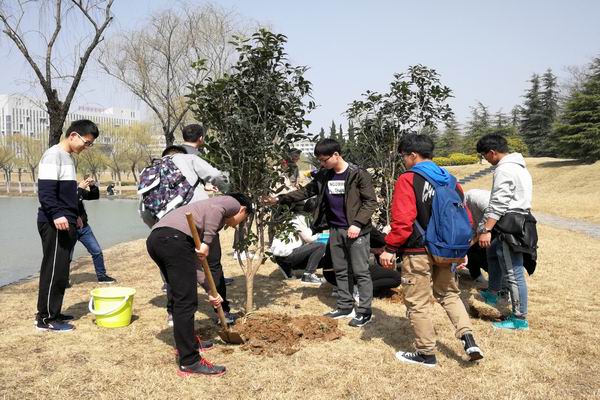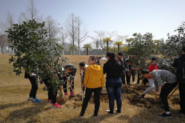 2017级本科生在翡翠湖校区俪人湖畔举行“莘莘学子意,浓浓工大情”班级树种植主题活动,该院2017级50余名学生代表和相关老师参加了此次活动。活动前期,17级本科生班级干部通过实地考察,综合考量、精心挑选,最终选择寓意高雅和荣誉象征的桂花树作为班级树,代表了同学们对学校和班级的美好祝福和期待。植树节当天,班级干部在各班征集植树人员,同学们积极响应,争先为栽培班级树贡献自己的一份力量。