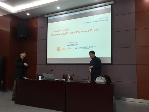邀请,哥伦比亚大学曹亮亮教授在翡翠科教楼第五会议室做了题为《图片与视频理解:10年研究与实践进展》的报告。会议由汪萌教授主持,相关专业的四十余名师生参加了此次报告会。