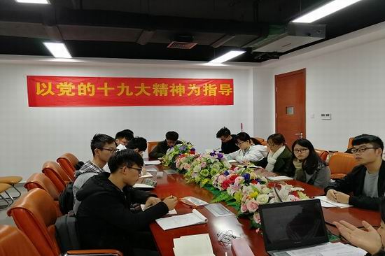 关于在全体学生中开展学习宣传贯彻党的十九大精神的实施方案》。黄老师指出,各位团学干部不仅打铁应需自身硬,坚持目标导向,在学懂、弄通、求实上下功夫,深入学习、准确把握、宣传落实党的十九大精神实质、丰富内涵与根本要求,不忘初心,牢记使命,践行“四个正确认识”,奋力成为一名互联网+时代知行合一的复合型人才。更要保证在开展团学组织各项工作时,立足于网络、社团、班级、年级、活动、支部,紧紧围绕“十二个一”工程,以创新性的精神宣传与展示,项目化的价值引领和塑造,交融性的文化熏陶与内化,导向性的目标指引与促融,渗入式的活动组织与开展,榜样化的行为辐射与带动,聚忠诚向党之心,励社会主义核心价值之行。之后各团学干部按照所任职中心或部门进行近期已开展工作的总结和对未来工作的展望,全体团学干部均按照上级组织的指示将深入贯彻落实党的十九大精神作为当前开展各项活动的核心思想,为下一阶段的团学工作进行具体的导向性规划。同时就自身目前开展团学工作中出现的各项问题进行了总结和会上交流讨论,经过讨论多数问题得到有效解决。最后学院2016级辅导员杜欣鹏老师进行会议总结,杜欣鹏老师就当前团学组织的工作理念、学院平台特点以及身为团学干部不忘初心等三个方面进行方向性总结,告诫与会干部们要学会放权给大一新生,锻炼自身的组织协调能力和新生的做事能力;作为从学生中来的团学干部,更要真正深入到学生中去,不要脱离广大的学生基础,要真正去思考、去组织、去开展对同学们真正有帮助、有意义、有启发的团学活动。
