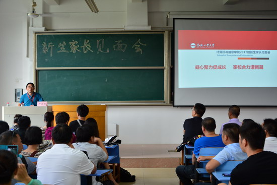 在翡翠湖校区二教102举行新生家长见面会。学院党委副书记、副院长何庆领,2017级辅导员以及近300余名新生家长参加了这次见面会。