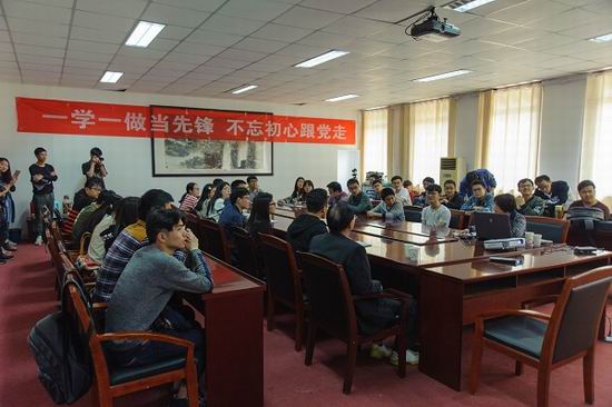 首先张老师向同学们介绍了读书日的来历和目前全国以及本校的读书概况。通过精确的数据说明了目前全国每年人均读书量仍有较大的发展空间,例如2016年全国人均读书7.86本,阅读纸书时间20.20分钟,手机阅读则为74.74分钟。根据这样的数据,张老师又从读书的意义,即为什么要读书开始讲述。张老师从两方面谈起,读书是人的生存之道,可以增强人的本领,提高学习能力,还关系到国家、民族的兴衰成败。其次是书能点亮人生,是大学生实现青春梦想的必经之路。之后张素叶老师从“读哪些书”角度入手,推荐同学们多读那些有闪光思想和高尚语言的书,多读那些经过时代淘汰现在仍然巍然保留下来的书,比如马克思主义经典著作、中外历史以及经典文艺作品 。最后张老师以“怎样读书”结尾,借用习近平总书记的话——有目标,有恒心,有效率,有质量来建议大家在读书的过程中做到“学,思,记,用”,认真思考,记读书笔记,学以致用,让读书成为一种习惯。同学们还就如何进行读书笔记的记录等问题与张老师进行提问与交流,现场气氛十分活跃。