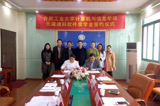 2017年3月28日上午,学院与天源迪科“软件奖学金”签约仪式在屯溪路校区科技楼516举行。