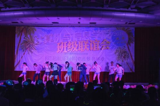 班级联谊会在翡翠湖校区综合楼301正式开幕。晚会以“E路起航乐相伴,IT追梦书华章。”为主题,学院团委书记黄晨、2014级辅导员叶璟、2015级辅导员陈曾珍、2016级辅导员杜欣鹏亲临现场观看。