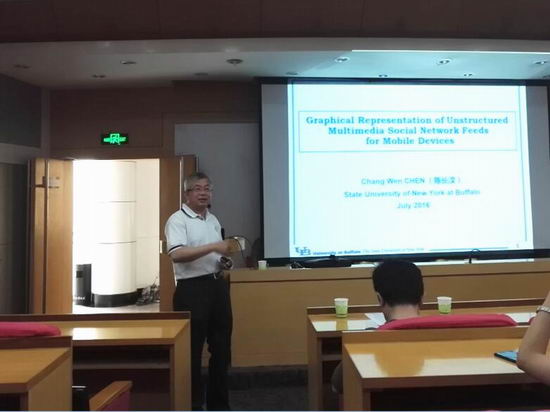 邀请,美国纽约州立大学布法罗分校陈长汶教授在学术会议中心二楼小报告厅做了题为 “ Graphical Representation of Unstructured Multimedia Social Network Feeds on Mobile Devices”的学术报告。报告会由徐常胜院长主持,禁漫