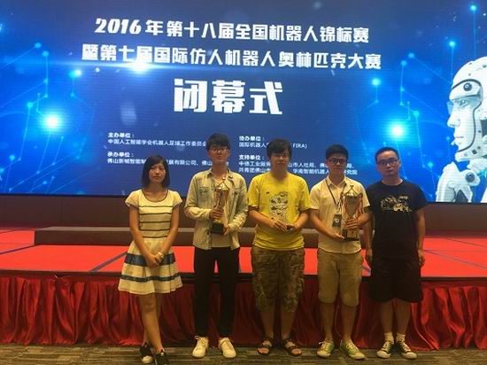 Hfutengine代表队6名参赛队员在张晶副教授的带领下,卫冕仿人机器人点球和服务机器人捡垃圾比赛2项冠军,夺得仿人机器人短跑亚军和单人舞蹈第5名,获得4项一等奖。本次大赛设立轮式移动机器人类比赛项目、仿人机器人类比赛项目、空中飞行机器人类比赛项目、创新类机器人设计比赛项目等5大类54个小项比赛项目。吸引了来自清华大学、哈尔滨工业大学、四川大学、华中科技大学、北京理工大学、华南理工大学等50多所高校400多支队伍参与。本次禁漫