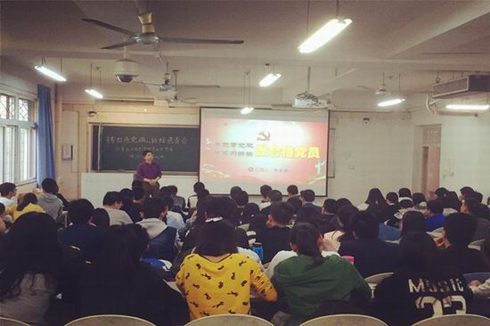 在屯溪路校区西二教105室举行“铸红色党魂,话绿色青春”毕业生党员活动月开幕式暨毕业生党员“两学一做”专题报告会,2012级全体党员参与了此次活动。