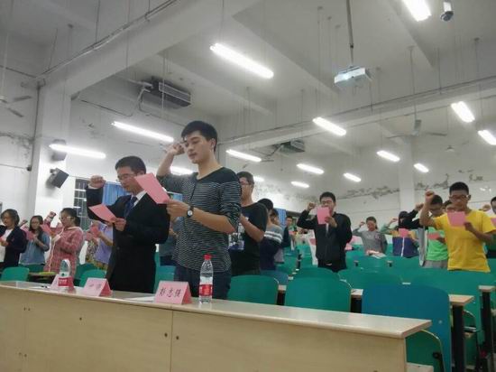 培训大会上,叶璟老师先以亲身经历谈了她对志愿服务的认识与感悟,并对志愿者们今后的工作提出了几点期待,勉励大家积极参与志愿活动。随后,先锋志愿中心主任李炳辉简要介绍了中心概况和所办活动。中心前主任彭志强为做了志愿服务注意事项和志愿者知识的培训,引导大家正确认识志愿活动,提高志愿服务质量。之后新生志愿者代表分享了自己的活动经历与收获。大会还举办了技术培训和志愿者宣誓活动。