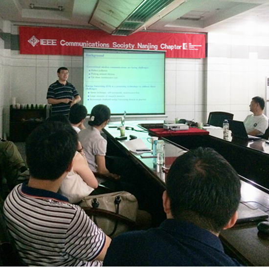 张伟老师首先简单介绍了IEEE亚太地区无线通信/网络协会,并与现场老师及同学交流了自己在IEEE协会的经历。针对能量采集通信,张伟老师介绍了能量采集的背景,包括能量来源、能量采集模型、能量预测方法等,并针对当前能量采集通信的研究热点做了详细介绍。接着,针对点对点通信的有限反馈模型,张伟老师介绍了一种基于马尔科夫决策过程的最优能量分配机制和数据传输策略,并在此基础上提出了一种复杂度较低的次优解。张伟老师的报告通俗易懂,与会老师及同学获益匪浅。