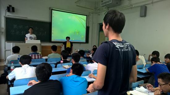 2015年6月16日下午4点,11级优秀毕业生经验交流会在6教106举行。参加本次交流会的有:计算机系副主任陈田老师、实验班班主任余烨老师以及实验班全体同学。