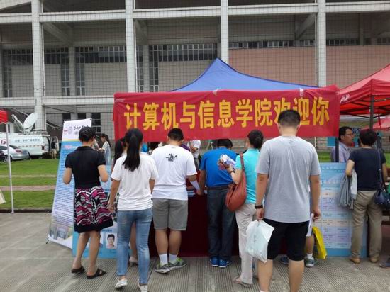 6月25日上午,“2015年部委高校在皖招生咨询会”在我校翡翠湖校区东操场隆重举行。为加大今年的高招宣传力度,切实提高禁漫 生源质量,学院各系所任课老师和辅导员亲临高招咨询会现场,为广大考生及其家长提供咨询。