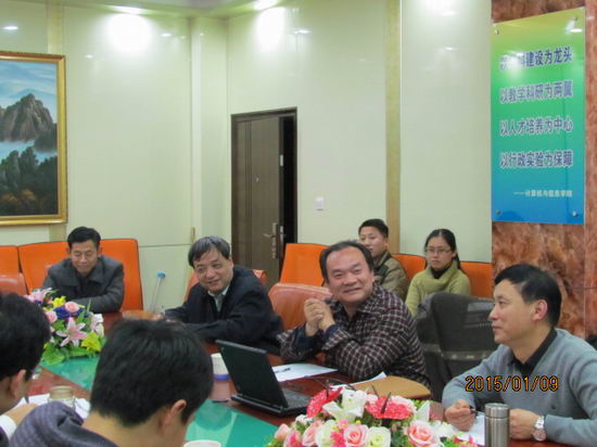 2015年1月9日晚7:00,学院在科技楼五楼会议室举行了自主人才培养B计划(国家教学名师培育计划)年度报告会,对启动5年的B计划进行了年度检查与总结。清华大学孙茂松教授、副校长刘晓平教授、校副教务长张辉教授、数学学院朱功勤教授和数学学院院长朱士信教授担任评审委员。会议由副院长郑利平主持。