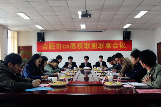 团学组织发起的合肥市2014年C9高校联盟联席会议在翡翠湖校区管委会第一会议室举行,来自中国科技大学、安徽大学等9所高校的计算机相关院系学生会主席参加了本次会议。