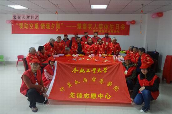 青年志愿者们来到合肥市包河区常青街道淝南家园,加入到社区举行的“耄耋老人生日会”的活动筹备和服务中,陪伴老人们度过了一个温暖祥和的生日。