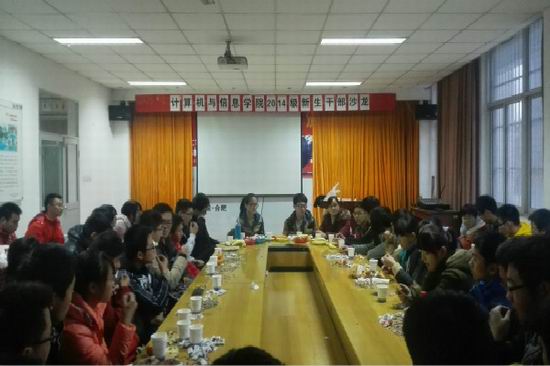 “2014级新生干部沙龙”活动在翡翠湖校区沙盘体验中心举行。院团委副书记黄晨老师,六位2013级优秀班级、社团干部,14级全体学生干部参与了本次活动。本次活动由2014级辅导员宋燕老师主持。