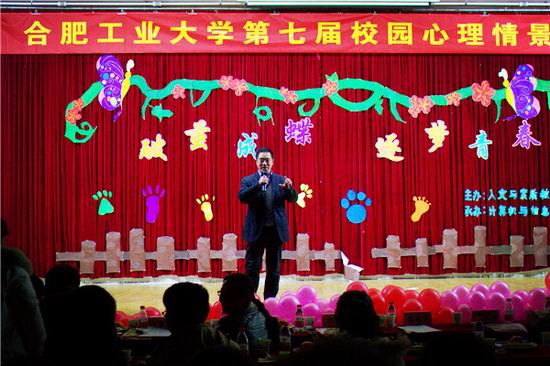 承办的第七届校园心理情景剧大赛总决赛在翡翠湖校区综合楼多功能厅举办。人文与素质教育中心主任李永山、中国影视家协会会员徐静老师、心理咨询中心副主任邝春霞及中心相关老师出席并担任评委。