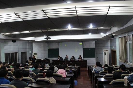 学生进行经验交流。其中,朱唯鑫、薛军与江义成三位研究生本科就读于我校。中国科技大学研究生联合会成员主持了此次交流会。
