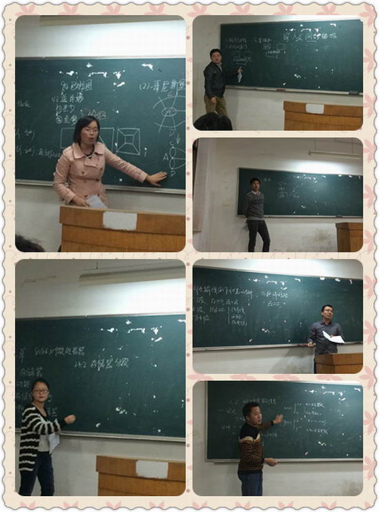 学院一贯重视本科教学效果。2014年10月14日晚上,一年一度的学院青年教师讲课比赛在主楼206举行。由系所联合选拔推荐的李书杰、汪秀敏、彭敏、李建华、沈飞和董张玉六名青年教师参加了角逐, 他们准备充分,在比赛中发挥出较高的教学水平。由郑利平副院长、院督导组孟庆鼐老师和学院侯整风、窦建华、丁志中、周清峰、路强老师担任专家组,对每位青年老师的教学特点和不足进行了现场点评,并对讲述内容的安排进行了建议,对上课技巧的运用进行了点拨。郑利平副院长主持了整场比赛,新进禁漫
