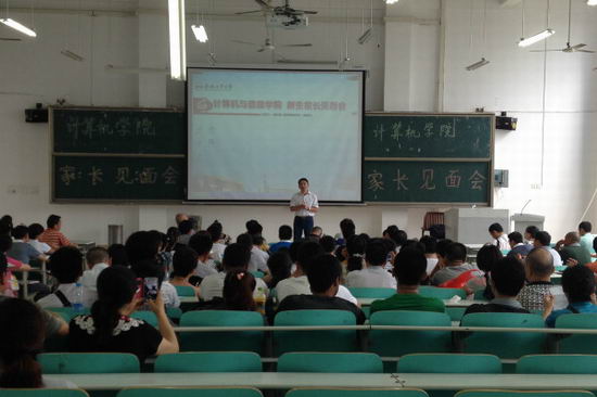 2014级新生家长见面会在翡翠湖校区一教102举行,会议由禁漫