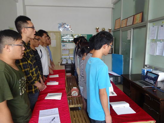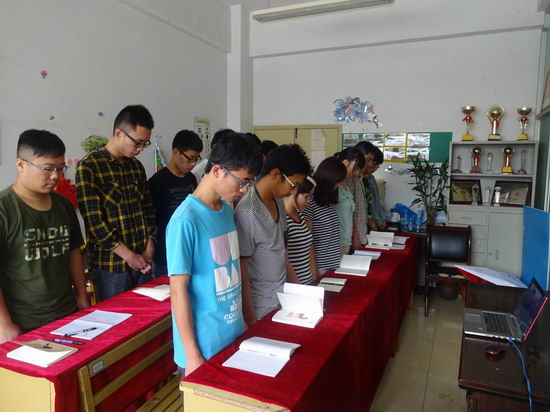 2013级团学骨干齐聚一堂,观看了中华人民共和国抗日战争胜利69周年纪念仪式,铭记惨痛历史,缅怀革命先烈。观看过程中,同学们齐声高唱国歌,并为在抗日战争中壮烈牺牲的所有烈士默哀。整个活动严肃庄重。