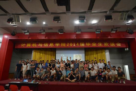 “缘起相逢,梦翔今朝”2014届毕业生欢送会在屯溪路校区东风报告厅隆重举行,学院党委副书记、副院长何庆领、学院全体辅导员及2014届500余名毕业生共同观看了毕业生晚会。