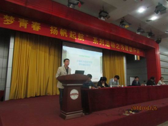 毕业生就业方向、工作简历的编写、毕业生要完善的个人素质四个方面进行了细致的阐述。在两位院领导的精彩讲解之后,六位2010级优秀本科生们为在座的2011级学生分享了他们关于就业、考研、保研、出国的亲身经历,鼓励现在的学弟学妹们要找准目标,并为了自己的理想坚持奋斗,祝愿所有的2011级本科生都有美好的未来。