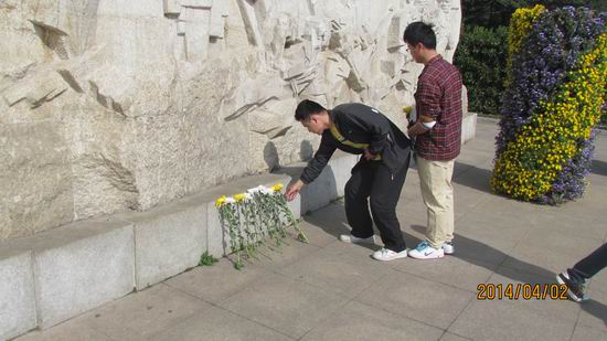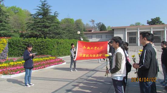 早上7点30从学校组队出发,9点到达合肥大蜀山烈士陵园举行仪式。入党积极分子代表宣读清明节扫墓致辞,全体成员默哀一分钟。之后,党员重温入党誓词,全体学生怀着崇敬的心情向纪念碑鞠躬致敬,敬献鲜花,以表达对革命先烈缅怀之情,气氛庄严肃穆。最后全体人员在陵园进行了清扫活动。