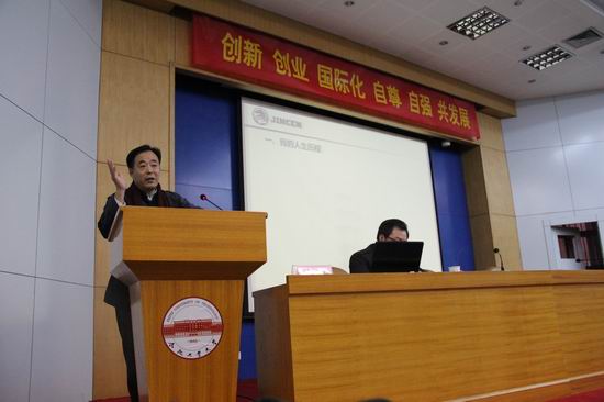 邀请,安徽省山东商会会长、金诚复合材料有限公司董事长艾迁在学术会议中心大报告厅为我校师生作了题为“创新创业国际化,自尊自强共发展”的专题报告。副校长刘晓平、禁漫