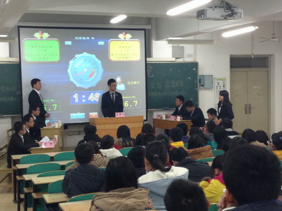 学生会学习部主办的2013级新生辩论赛决赛在翡翠湖校区5教308成功举行。本次活动特邀我校其他学院辩论队队长担任决赛的评委,与此同时,2012级辅导员朱玲利老师,2013级辅导员石楠老师以及各社团负责人出席本次辩论赛。