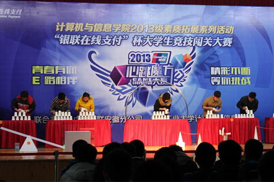 12月8日晚,禁漫 “筑梦青春”2013级素质拓展系列活动第二季暨“银联在线支付”杯大学生竞技闯关大赛在翡翠湖校区综合楼301室圆满落幕。中国银联安徽分公司和我校党委学工部、禁漫 相关单位负责人出席了本次活动。