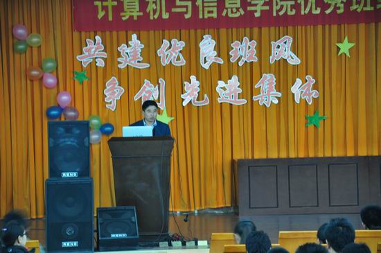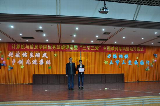 班级工作考核体系评分细则》,分别从班级“制度建设、班风建设、学风建设、特色活动、风采展示”五个方面量化考核班级的日常工作。现场答辩中,各班结合班级实际情况,围绕班级主题,以丰富多彩的形式展示班级的特色与文化。此外,本次评选开设微博墙,促进各班有效互动。经过层层遴选,计算机科学与技术12-3班荣获此次评选一等奖。