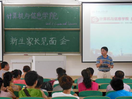 8月23日下午,2013级新生家长见面会在翡翠湖校区三教102举行,学院党委副书记、副院长何庆领,通信系主任丁志中,计算机系主任路强以及学生家长参与了此次会议。
