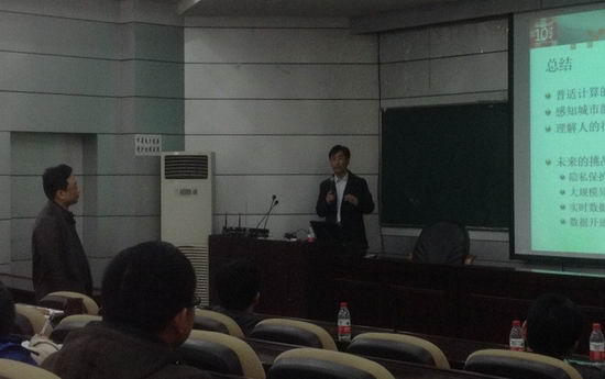 邀请,2013年3月28日上午,微软亚洲研究院主管研究员,IEEE/ACM高级会员谢幸博士在斛兵楼报告厅做了题为“普适计算、城市计算与用户理解”的学术报告。报告会由杨学志副院长主持,信号所、通信所与软件所教师以及学院研究生、本科生参加了此次学术报告。